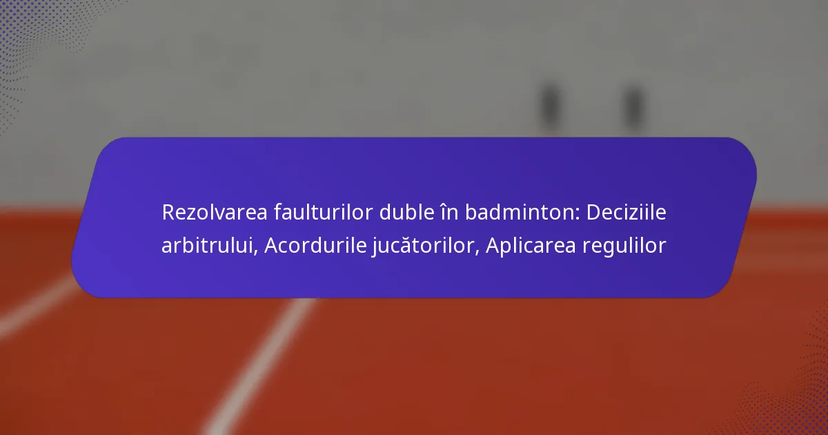 În badmintonul de dublu, rezolvarea faulturilor este un aspect critic care implică deciziile arbitrilor, acordurile jucătorilor și aplicarea strictă a regulilor. Rolul arbitrului este esențial în a face apeluri corecte și a asigura un joc corect, în timp ce acordurile jucătorilor pot îmbunătăți comunicarea și minimiza disputele. O înțelegere profundă a regulilor stabilite este esențială atât pentru jucători, cât și pentru oficiali, pentru a menține integritatea jocului.
