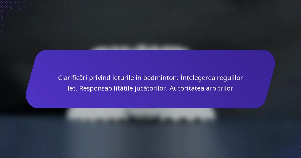 Autoritatea arbitrilor influențează semnificativ deciziile privind let-urile în badminton, deoarece aceștia sunt responsabili pentru interpretarea regulilor și asigurarea unui joc corect. Arbitrii au ultimul cuvânt în ceea ce privește declararea unui let, ceea ce poate afecta fluxul jocului și strategiile jucătorilor.