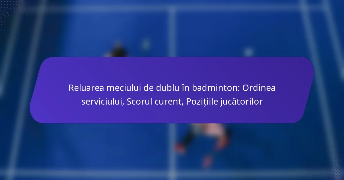 Reluarea unui meci de badminton la dublu implică reguli specifice referitoare la ordinea serviciului, scorul curent și pozițiile jucătorilor. Înțelegerea acestor elemente asigură o tranziție lină înapoi în joc și menține integritatea meciului.